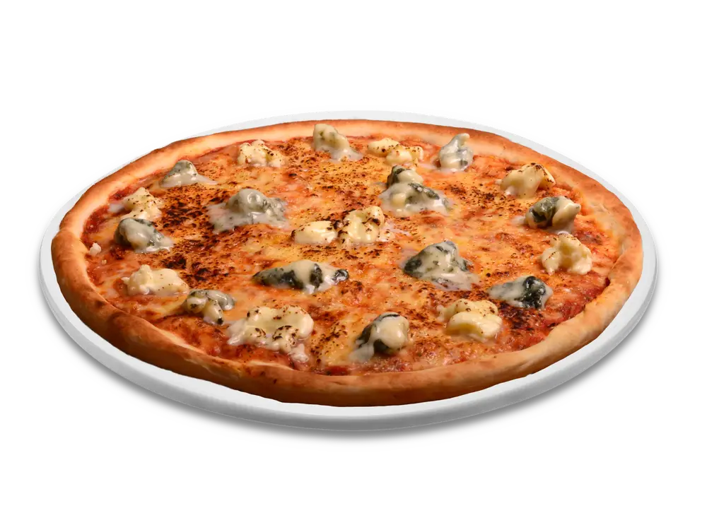 Frischer Teig, Tomatensauce, echter Käse, Gouda, Edamer, Mozzarella, Gorgonzola